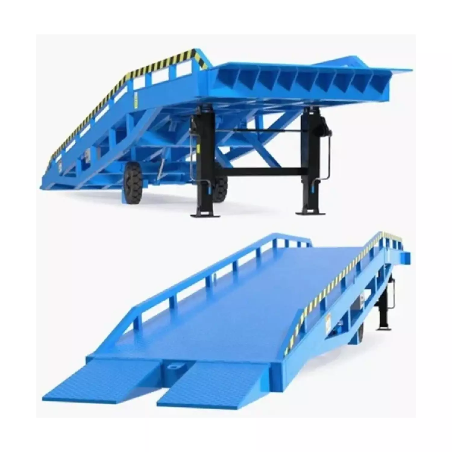 Forklifts, pallet trucks, and material-handling equipment can all move smoothly between ground level and truck/container height with the help of a mobile or adjustable dock ramp. This ramp is perfect for warehouses, logistics facilities, and other industries requiring quick and adaptable loading and unloading operations because it is designed for mobility, height adjustment, and heavy-duty performance.